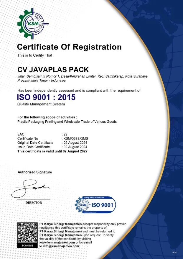 - Menggunakan Mesin Rotogravure Sehingga Menghasilkan Kemasan Plastik Full Printing Yang Memberikan Kesan Profesional dan Berkualitas Tinggi